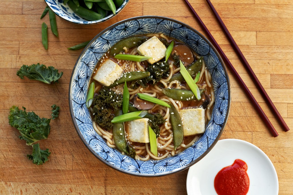 - Do gotującej wody z imbirem, dodać pastę miso, shitake, warzywa i makaron. Gotować 5-6 minut, aż makaron będzie gotowy.