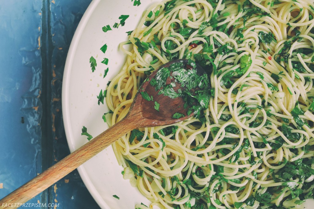 Makaron spaghetti z czosnkiem, chili i oliwą (aglio olio)