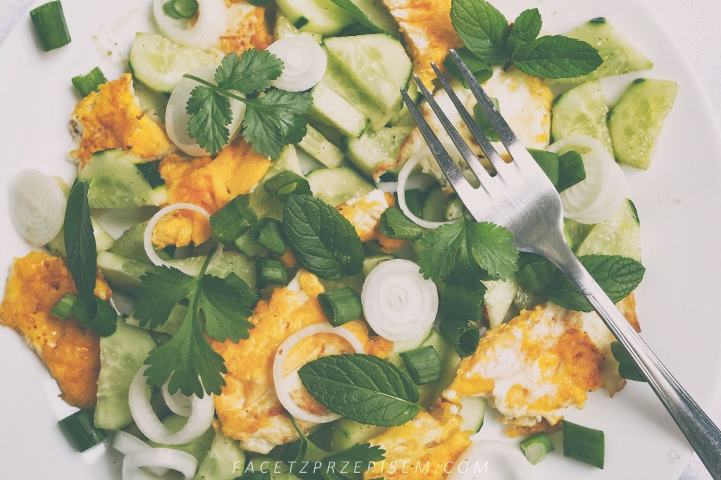Niezwykłe połączenie, które się sprawdza. Przepis pochodzi z Tajlandii i w oryginale zamiast jajka używa się smażonego mielonego mięsa.