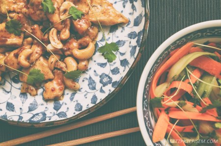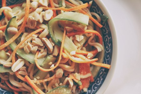 Ekspresowa w przygotowaniu sałatka z dobrym sosem na bazie sosu sojowego i domowego orzechowego masła.