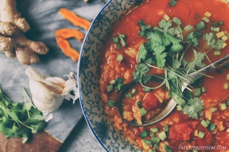 Rozgrzewająca zupa, szczególnie dobrze smakuje w chłodniejsze dni. Świeży imbir i kurkuma dodają jej wyjątkowego posmaku.