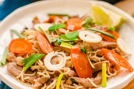 Danie popularne w północnej części Tajlandii oraz w Birmie. Jest to bardzo pyszne danie, ostrość potrawy można regulować poprzez dodanie (odjęcie) ilości papryczek chili, których użyjemy w przepisie.